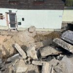 Bei einem in Sanierung befindlichen Wohngebäude kam es aus unbekannten Gründen zu einer Schieflage und drohte auf die B320 zu stürzen.